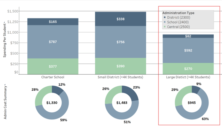 The first point that needs to be made clear is that over 60% of administrative costs are at the school administration. In other words, if a district were to split, 60%+ of the admin overhead would remain the same, because a district split would not create or close schools or add any school administration.